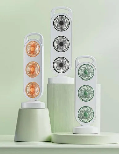Triple hélice synchronisée pour un souffle puissant et homogène, idéal pour les fortes chaleurs.