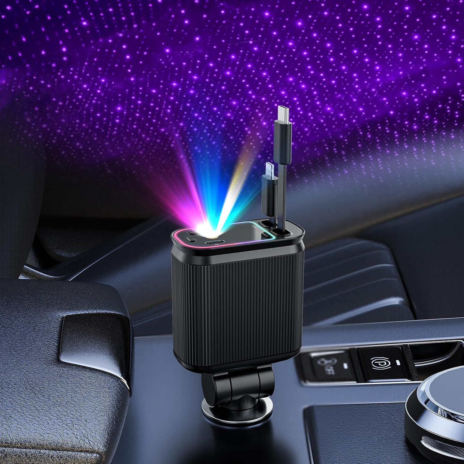 Fini les câbles qui traînent et s’emmêlent. Les deux câbles intégrés s’étendent jusqu’à 80 cm et se rétractent automatiquement pour garder l’intérieur de votre voiture propre et organisé.