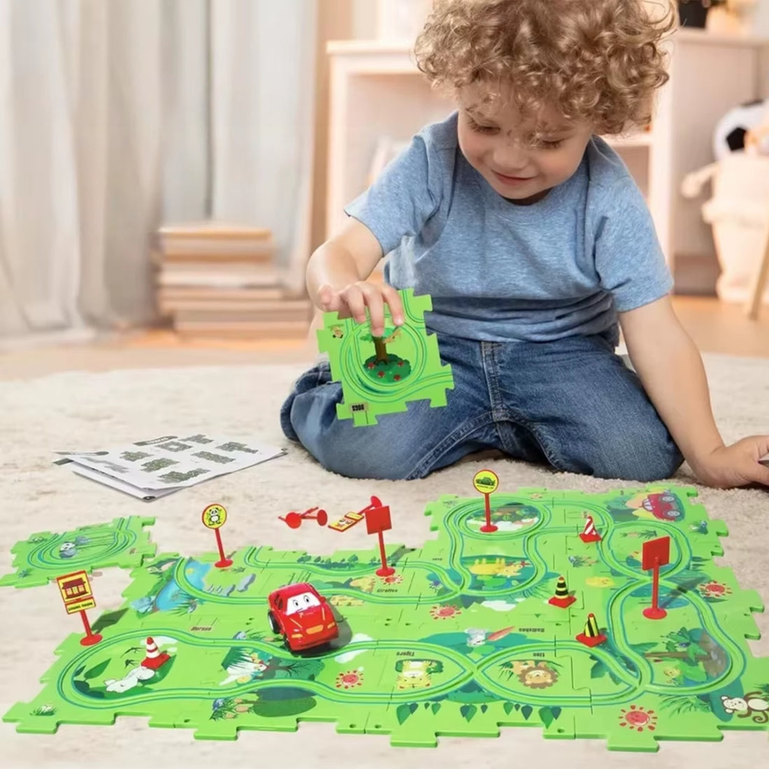 Notre circuit voiture électrique est un magnifique puzzle coloré doté de routes sinueuses divertissantes qui stimuleront vos enfants adorés!