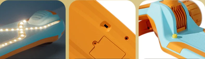 Les roues LED silencieuses, la lumière frontale et la musique intégrée transforment chaque sortie en une aventure magique, même à la tombée de la nuit.