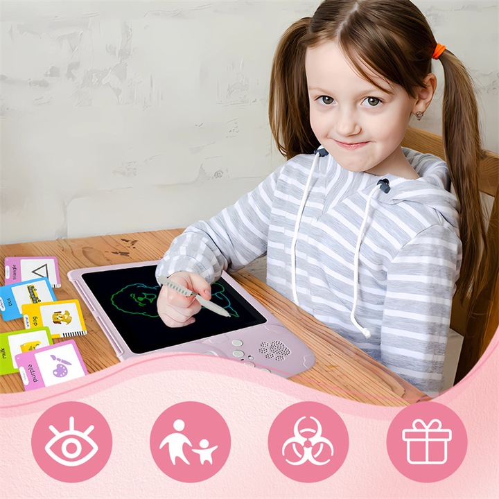 Un jouet éducatif qui regroupe lecture, écriture et dessin dans une seule tablette. Parfait pour l’école à la maison, les classes ou les enfants avec besoins spécifiques.