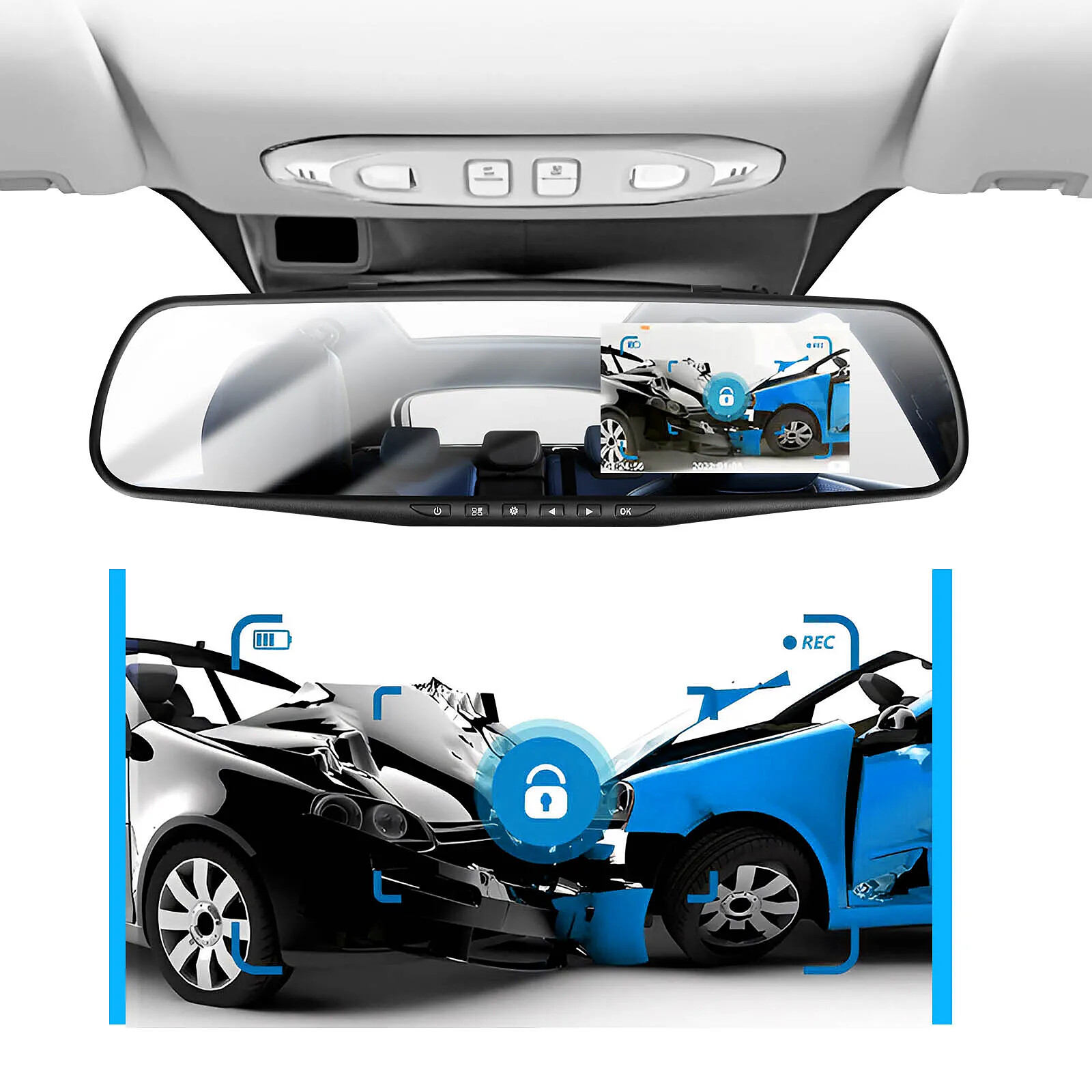 Cette dashcam DVR-01 vous permet de capturer et d'enregistrer chaque moment de votre route en toute simplicité. Grâce à son support intégré, elle s'installe facilement et discrètement sur votre rétroviseur existant. En plus d'un miroir, elle intègre un écran TFT couleur 5'' haute résolution permet de visionner vos enregistrements en 1080p HD. Avec le capteur G-sensor, elle détecte automatiquement les situations d'urgence telles que les freinages brusques ou les collisions pour verrouiller immédiatement les images enregistrées.